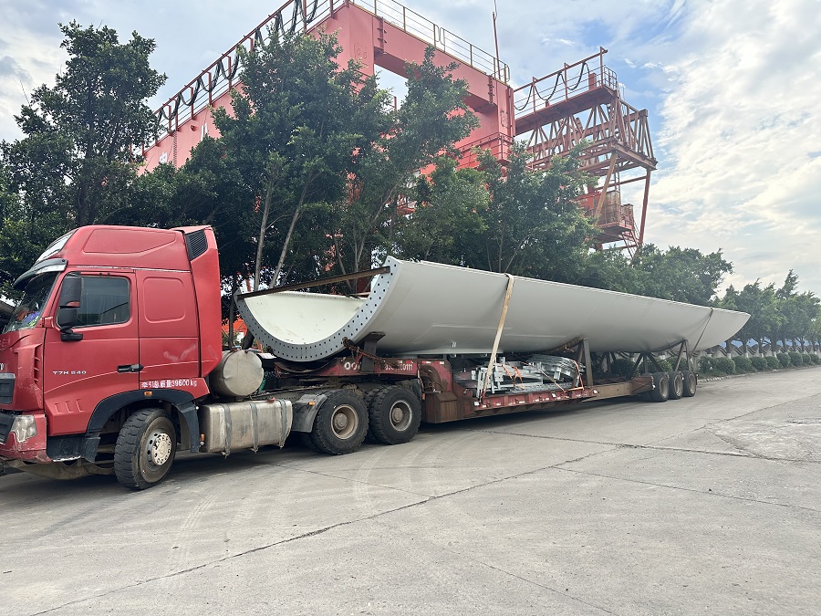 該項(xiàng)目位于涼山州美姑縣東北部,項(xiàng)目總裝機(jī)容量230兆瓦,由6套單機(jī)容量5兆瓦的風(fēng)力發(fā)電機(jī)組和32套單機(jī)容量6.25兆瓦的風(fēng)力發(fā)電機(jī)組組成。塔筒總重量約1.6萬(wàn)噸,每套塔筒由6段組成,其中1至3段為分片式,4-6段為常規(guī)式。為確保項(xiàng)目順利履約并按期交貨,建筑工程公司設(shè)備制造事業(yè)部高度重視,積極組織相關(guān)人員開(kāi)展技術(shù)攻堅(jiān),成功攻克了三瓣法蘭拼裝組環(huán)、筒體切割和分片塔筒預(yù)拼裝等生產(chǎn)制造難題,設(shè)計(jì)出一批適用于分片式塔筒制造和運(yùn)輸?shù)膶?zhuān)業(yè)工裝設(shè)備,確保首套塔筒按期完工,并順利通過(guò)業(yè)主、監(jiān)理單位聯(lián)合驗(yàn)收。