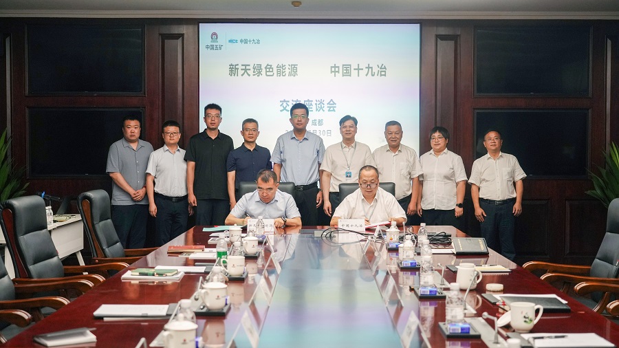 郭艷旬對中國十九冶的熱情接待表示感謝,并簡要介紹了新天綠色能源的發展歷史、企業架構和發展規劃。他表示,新天綠色能源十分重視雙方現有合作項目,將持續加強與中國十九冶的協作,扎實做好項目的程序管理、節點推進等工作。非常期待與中國十九冶這樣綜合實力雄厚、專業優勢顯著的央企建立長期穩定的合作伙伴關系,希望雙方在新能源、基礎設施等投資建設領域不斷拓展合作空間,互惠互利、攜手前行,譜寫合作共贏新篇章。